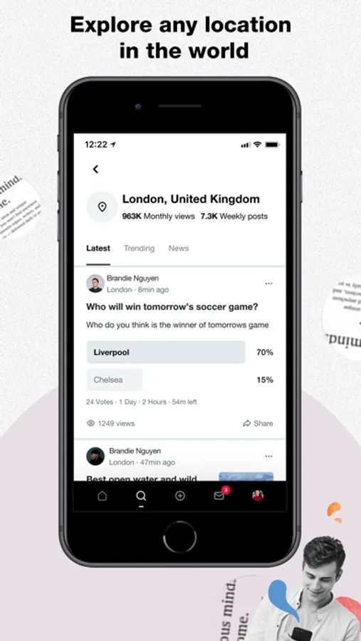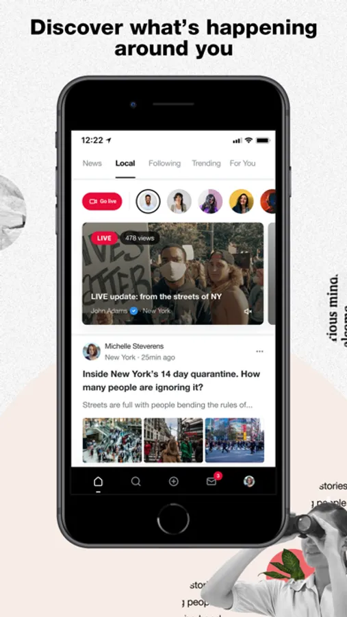On Feedc you will see what are people around you or local news outlets posting. You will not have to follow or subscribe to anyone. Content will be automatically shown and prioritized based on your location.