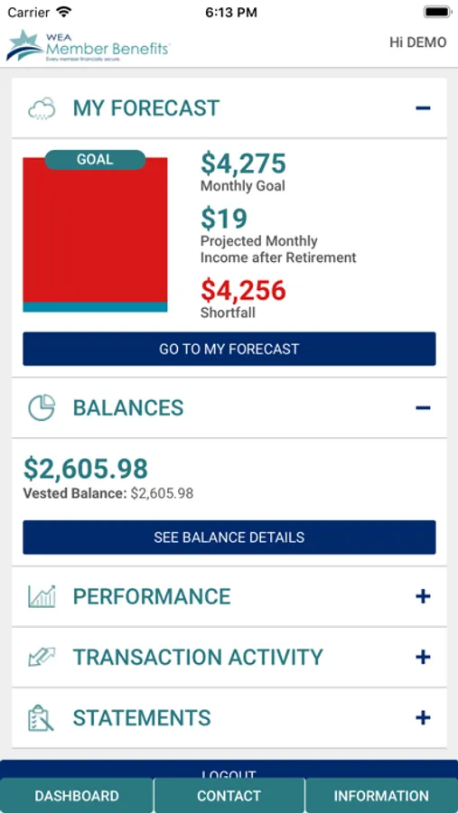WEA Member Benefits mobile app provides members with a quick look at their 403(b) and IRA accounts--in real time. View your balance, recent activity, performance and contribution information. Please contact memberbenefits@weabenefits.com for help or suggestions.