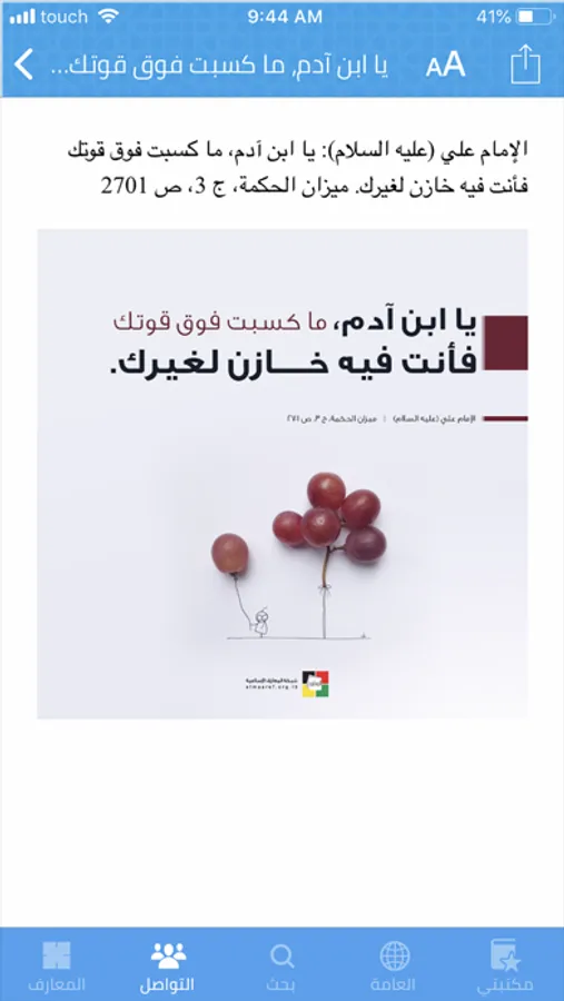 هي جمعية ثقافية تعمل على تحصين وتنمية الروح الايمانية والجهادية، ورفع المستوى الثقافي، وتعميم القيم والآداب العامة، ونشر الثقافة الاصيلة المواكبة للعصر المستقاة من نهج الامام الخميني "قدس" معتمدة على كفاءات علمائية، وخبرات فنية وادارية، ببرامج جذابة ووسائل متطورة وأساليب عصرية.تطبيق مكتبة الكتب التابعة لجمعية المعارف الإسلامية