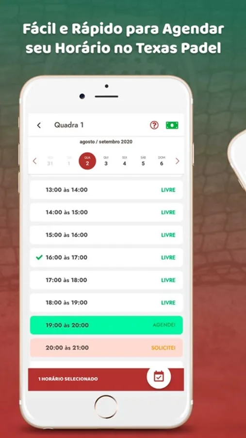 Com o app você ganha a facilidade de procurar e solicitar uma horário para você praticar Padel, sem ter que ligar para a quadra esportiva para saber os horários disponíveis.