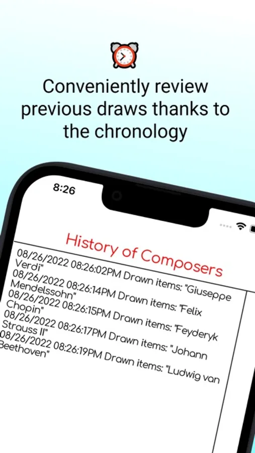 Directly from the application you can create your name lists, from which you can make draws. Immediately after a draw you can also remove the items you have just chosen from the list, so that the drawer won't draw them again.