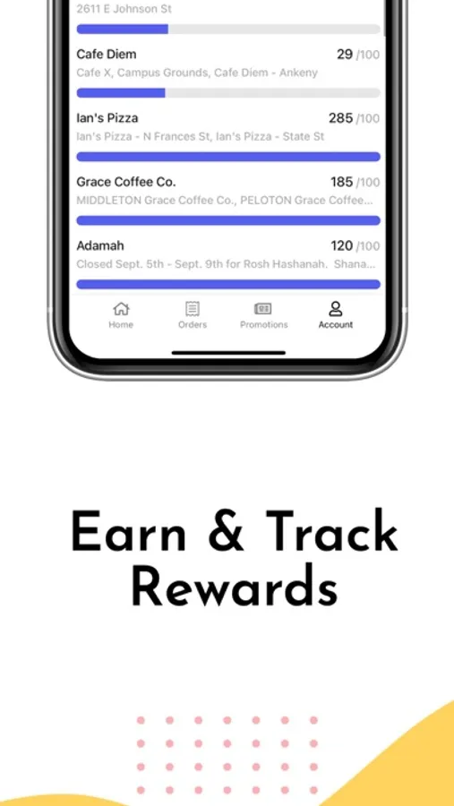Get free items at your favorite local shops by earning points for every dollar you spend. Easily track and redeem your rewards on the app.