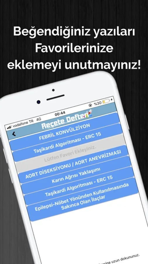 > Favoriler kısmı ilk yüklendiğinde eğer gözükmüyorsa lütfen önce içerikleri siliniz. (Favoriler kısmından butonlara tek tek uzun basmanız gerekecektir.)