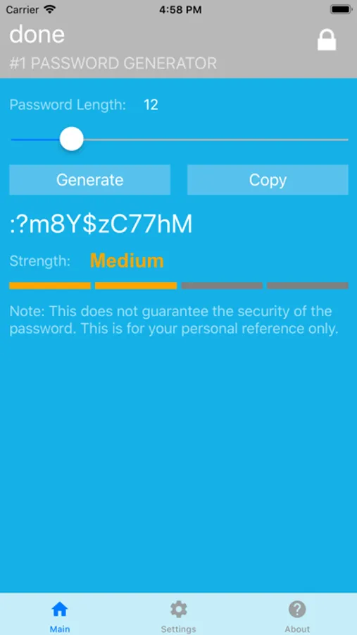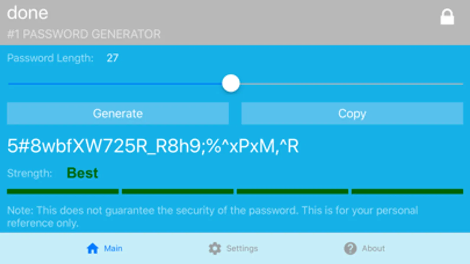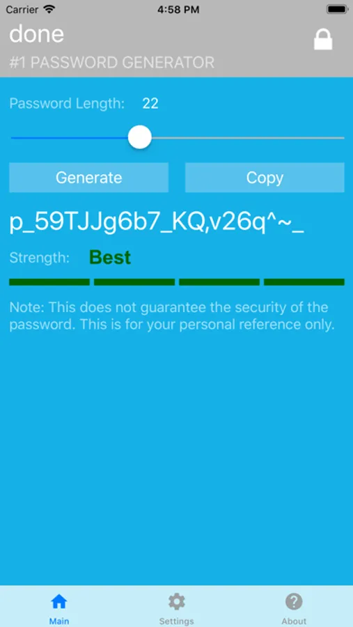 Need a quick, easy and secure way to come up with a new secure random password that meets personal or corporate requirements? Try #1 Password Generator - the best app of its kind!