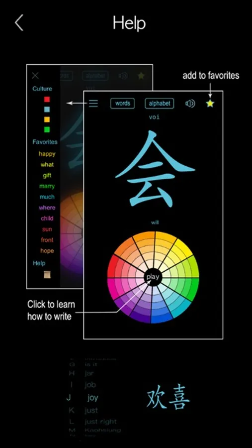 Click on the "alphabet" button in the menu bar, you can get the sound elements of the Hakka language.