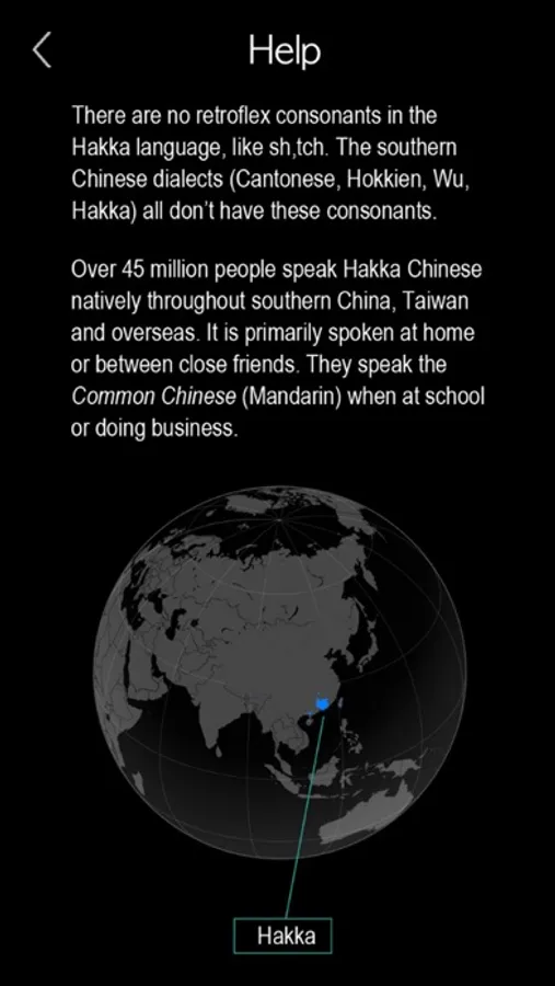 There are no retroflex consonants in the Hakka language, like sh,tch. The southern Chinese dialects (Cantonese, Hokkien, Wu and Hakka) they all don’t have these consonants.