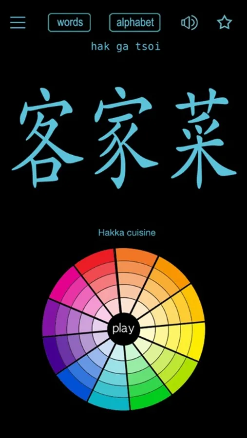 You can select the word in alphabetical order (English meanings) by clicking “words” in the menu bar. Basic everyday Hakka words!