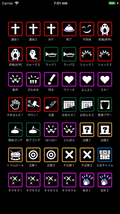 ライブ配信向けに使用できそうな音だけを集めた効果音再生アプリです。必要な時に必要な音がすぐ押せるよう一つの画面にボタンを集約してみました。異なる効果音だけでなく同じ効果音も重ねて再生することもできるので組み合わせでアレンジが広がります。