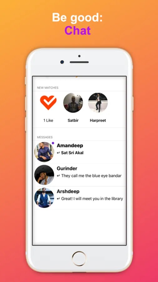 Match. Chat. Date. SikhSwipe is easy and fun—Swipe Right to Like someone, Swipe Left feature to pass. If someone likes you back, It’s a Match! We invented the double opt-in so that two people will only match when there’s a mutual interest. No stress. No rejection. Just tap through the profiles you’re interested in, chat online with your matches, then step away from your phone, meet up in the real world and spark something new.