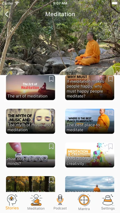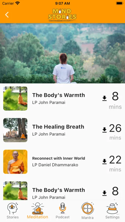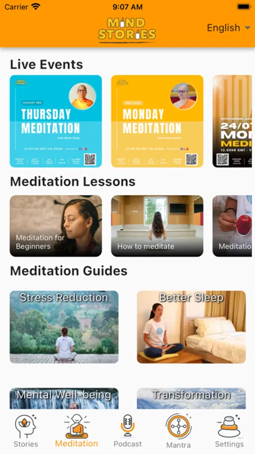 The app features contents from Mind Stories as well as 13 meditation guides available from seven teaching monks guiding meditation in 6 languages.