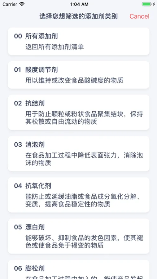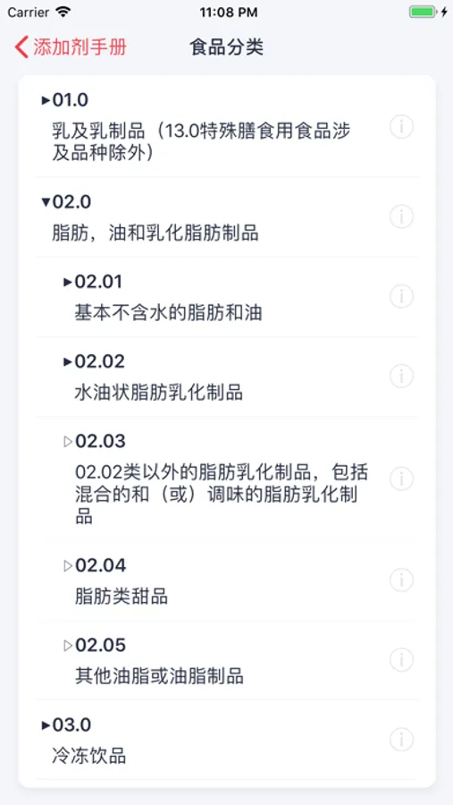 一张简洁、高效的食品分类表,并链接了各个类别下可用的添加剂清单。