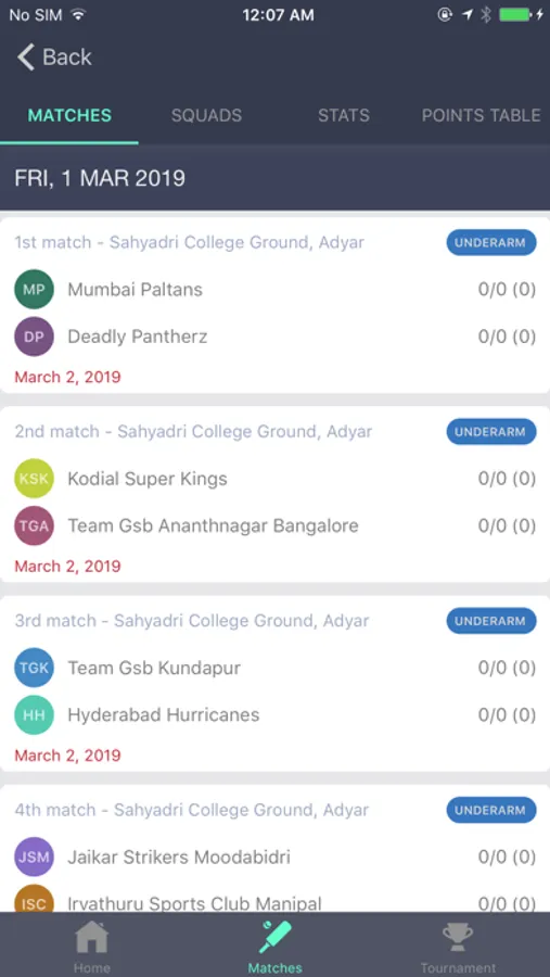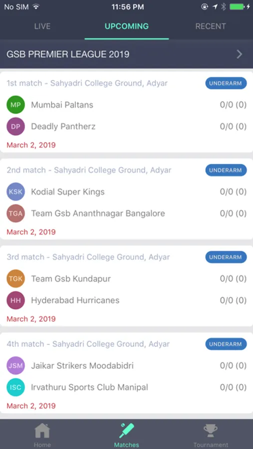 - Upcoming matches