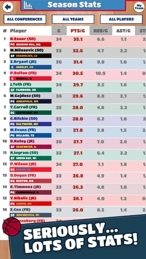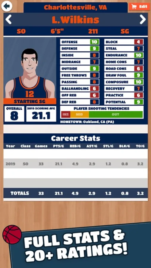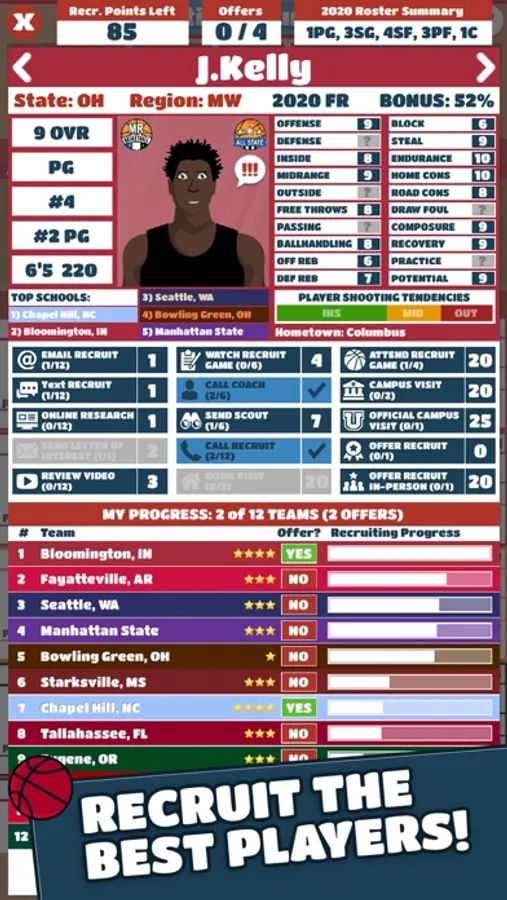 This time, you’ll experience the deepest college basketball sim on the mobile market, with full stats and records, 20+ player ratings, player positions, extensive recruiting and a much more comprehensive simulation of the game.