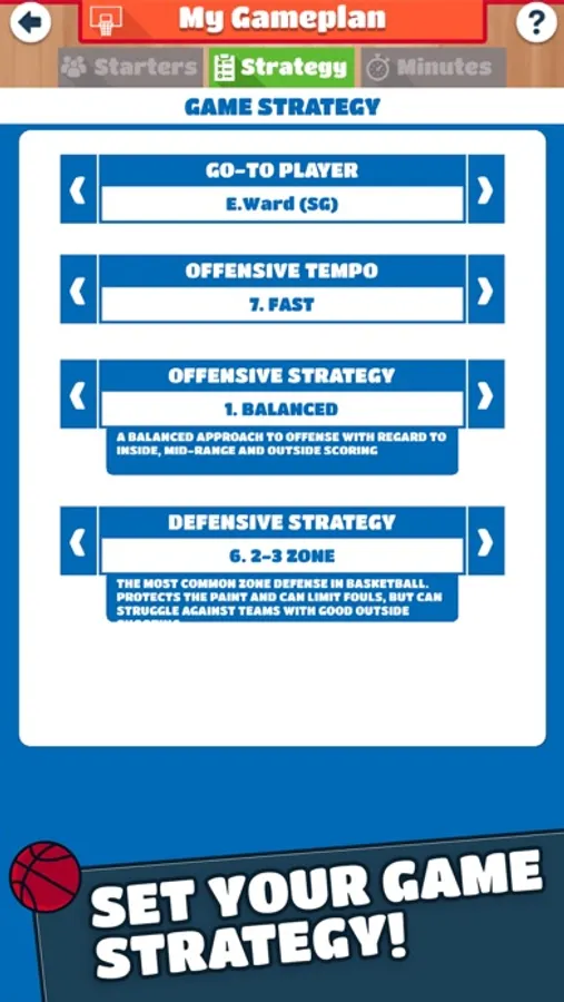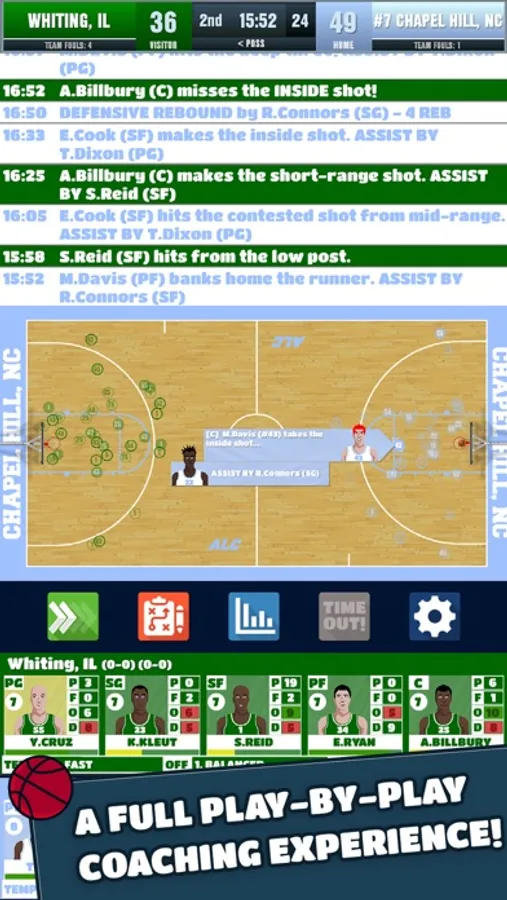 • Manage your team starters, depth chart, set rotation minutes, tempo and choose from over 10 offensive and defensive strategies to ensure your team plays exactly the way you want!