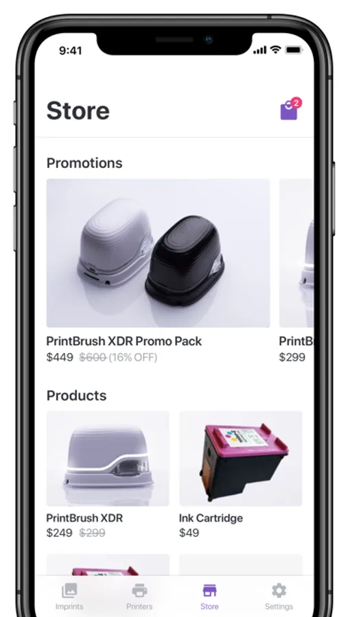 This app is the virtual dashboard to your PrintBrush XDR mobile color inkjet printer. Establish Wi-Fi connectivity for high speed transfer of content to your handheld printer. Receive back information about the ink- or battery levels.