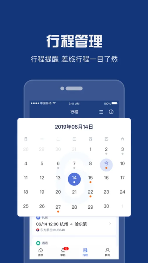 2.行程管理:预订后自动创建行程;日历模式、列表模式按习惯随心切换