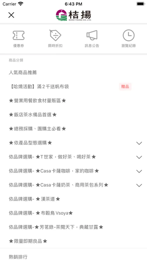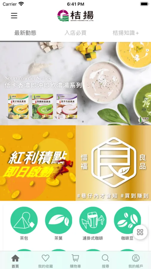 由「茶與咖啡的專業商」桔揚公司,結合了茶葉的【T世家】品牌,與咖啡、奶茶的【Casa卡薩】品牌,並新增了【漢茶道】漢方機能香草茶飲,與【布穀鳥】沖調濃湯粉類等,多樣產品,多樣組合,多樣規格,來這裡都能找到您要的商品。