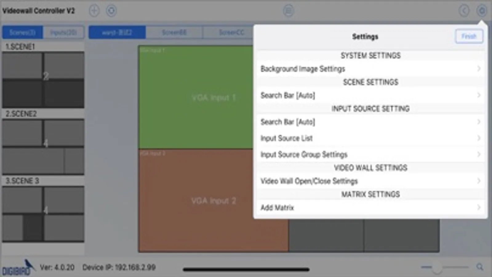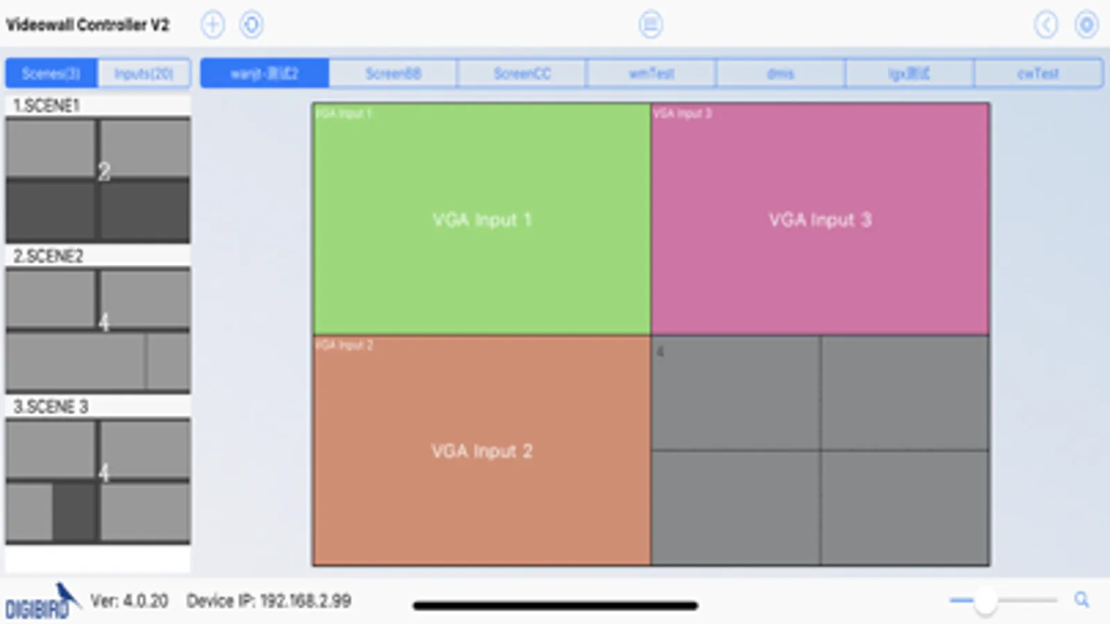 DigiBird Videowall Control V2 Software, short for "VCS2", is applied to remotely control DigiBird's line of Video Wall Controllers/Processors.