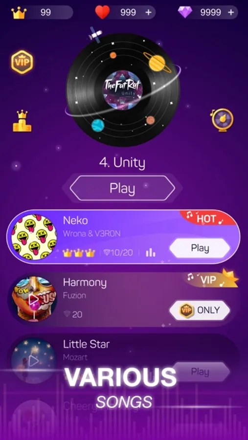 Follow the beats and control the moving direction of the light ball by tapping the screen. Listen to the rhythms and play to the music so that you can get a higher score and more diamonds. Move your fingers to experience the thrills of compact rhythms.