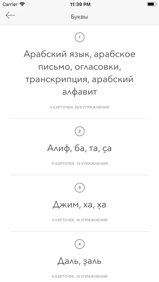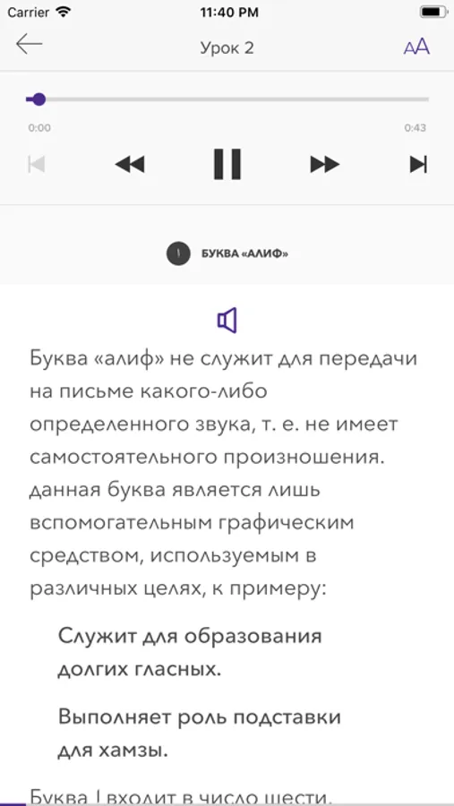 Приложение позволит вам прослушивать текст, упражнения и арабский текст.