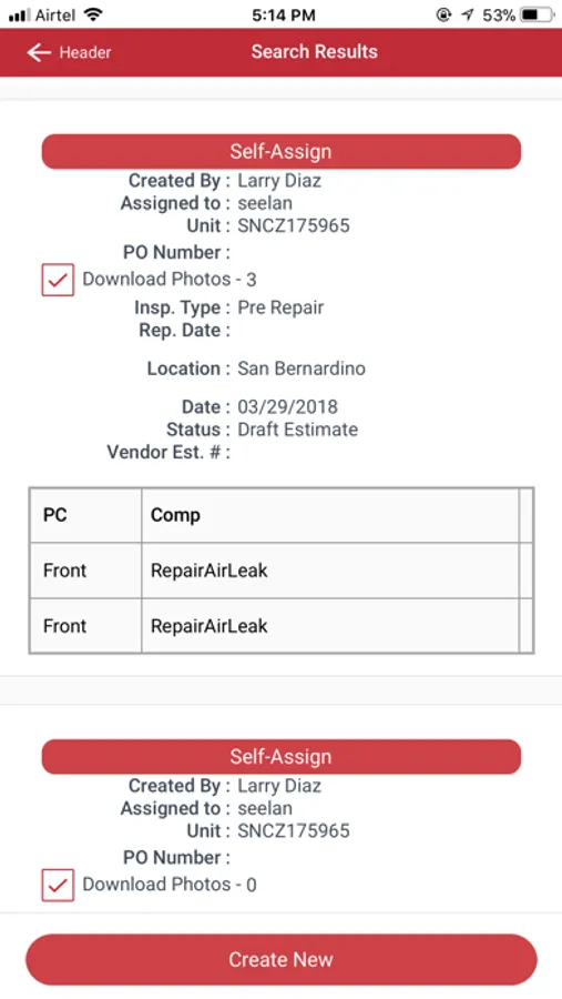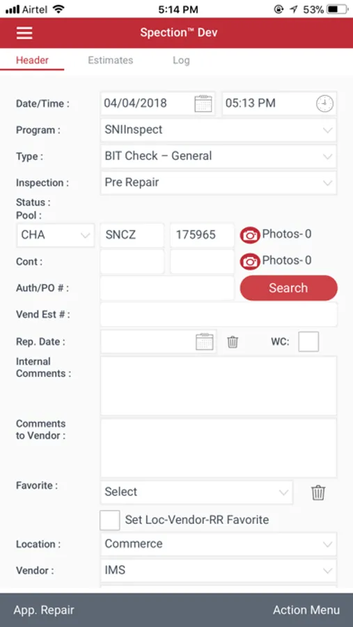 (Chassis, Container and Trailer) for documentation of defects and repair estimates. The application includes