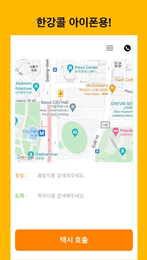 통화대기 없이 앱을 실행하여 출발지와 도착지를 설정하여 택시호출만 누르면 가까운 차량이 배차 됩니다.