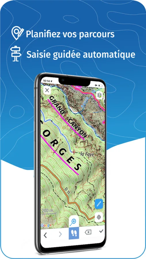 • Quickly create routes with pedestrian and vehicle routing (automatically follows roads and paths) - available with IGN Maps subscription