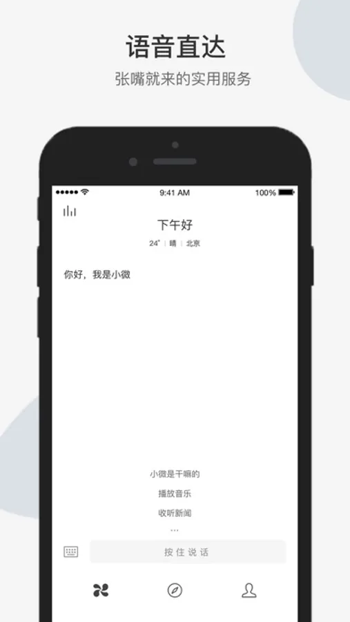 你可以通过语音和文字与小微对话,也可以通过喊“小微小微”唤醒它