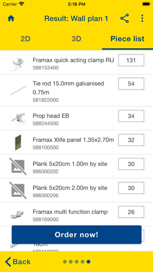 The calculated piece list can be easily matched with your existing material. Any further material needed can be shared by e-mail or ordered directly in the Doka Online Shop.