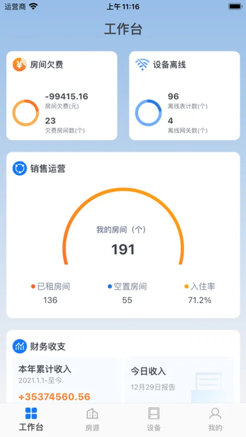 AMS管理系统是专为公寓行业深度打造的能源计量与收费管理系统,可有效提升公寓运营的智能化水平。App以房源管理为核心,集成水、电、气、热能耗计量设备管理功能,并提供财务运营等多维数据分析报表。