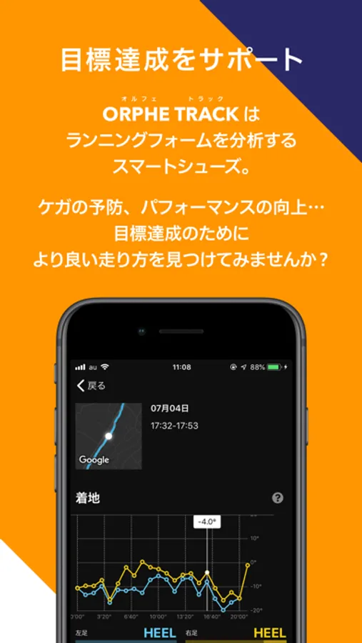 The mounted sensor module measures your running form. It helps runners achieve their goals of "preventing injuries" and "improving performance".