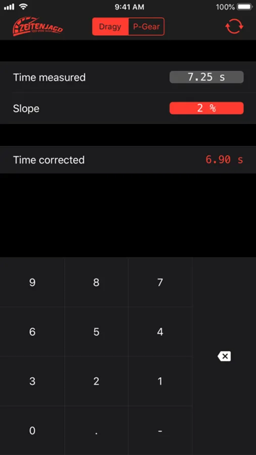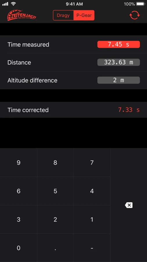 The ″Zeitenjagd Calculator″ allows you to easily correct 100-200 km/h times measured with ″Dragy″ or ″P-Gear″.