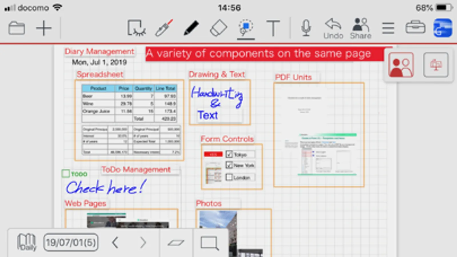 • Convert to a Share Note to allow multiple users to visually interact with the documents and add text, handwriting, photos, new pages, graphics, spreadsheets, and any other content types