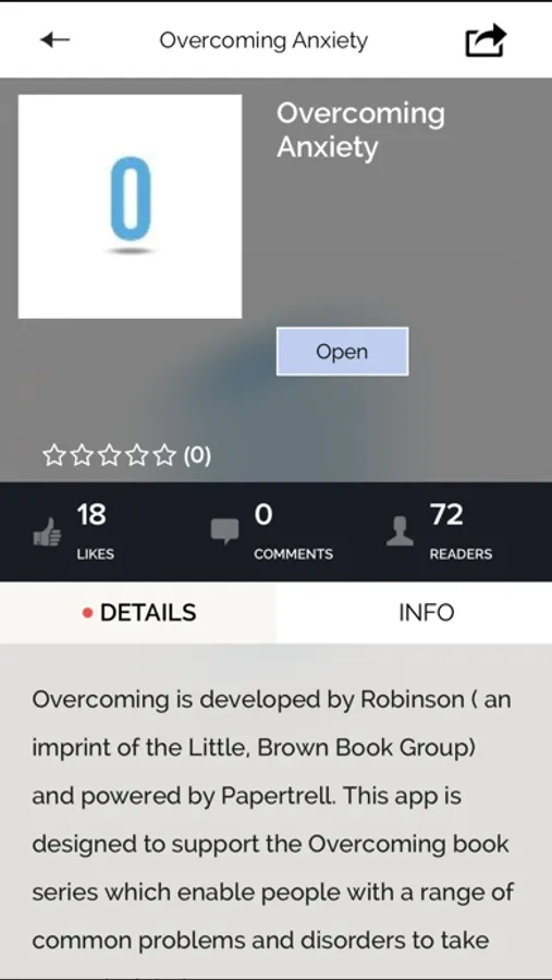This app is totally free and is intended to support a course of therapy, or a guided recovery programme with a doctor, therapist or other healthcare professional. It can be used alongside the book Overcoming Anxiety or other self-help titles for anxiety disorders.