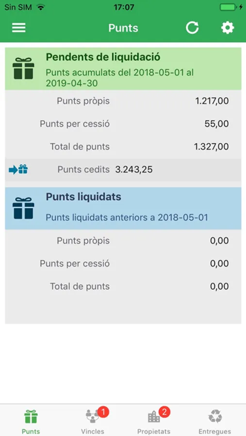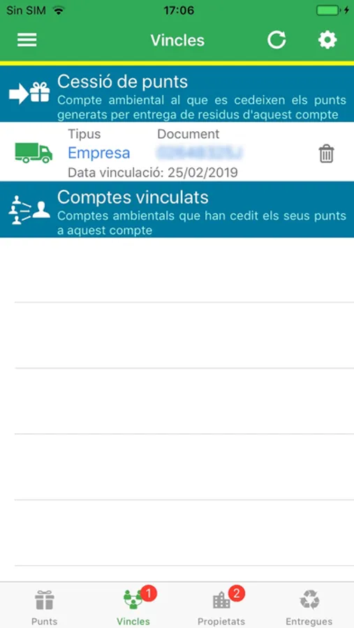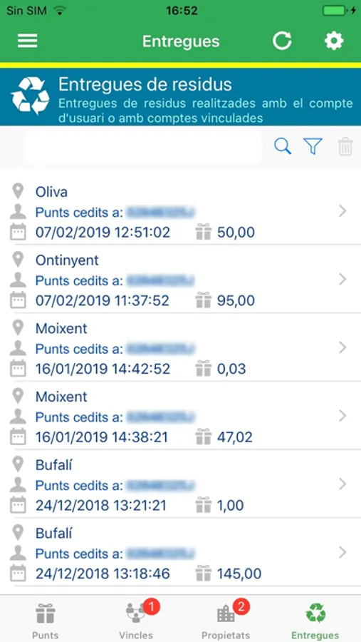 Esta aplicación te permitirá consultar los datos de tu cuenta ambiental (entregas de residuos, puntos acumulados), así como gestionar si quieres ceder tus puntos a otra persona o quién te los cede a ti. Si dispones de alguna propiedad, podrás seleccionar a cual de ellas se aplicaran las bonificaciones que se generen con tus puntos.