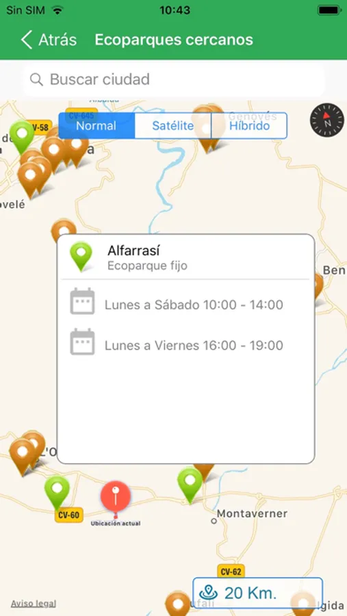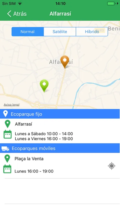 Además podrás consultar la localización de los ecoparques fijos o móviles mas cercanos a tu posición y sus horarios de apertura.