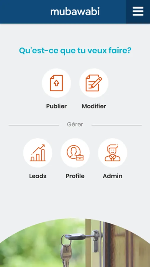 Grâce à un système de fonctionnement unique inspiré du quotidien de nos clients partenaires, Mubawabi représente la façon la plus simple, instantanée et complète pour gérer vos annonces. Durant la visite de qualification, vous pouvez mettre en ligne vos biens en seulement quelques clics, et ce directement sur votre smartphone.