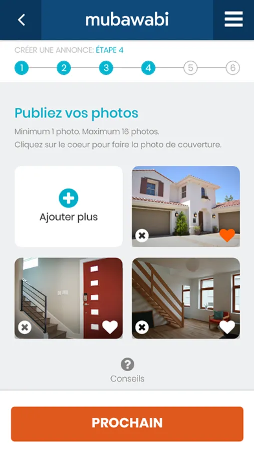 Grace à l’outil de mise en ligne d’annonces de l’application Mubawabi, plus besoin d’écrire des lignes de textes à ne plus en finir. L’application vous proposera, à la fin du renseignement, des canevas de description du bien. L’application vous permet également de prendre et de retoucher les photos durant le rendez-vous et toutes les commodités intérieures et extérieures du bien vous seront proposées à cocher au fur et à mesure de votre visite de qualification.