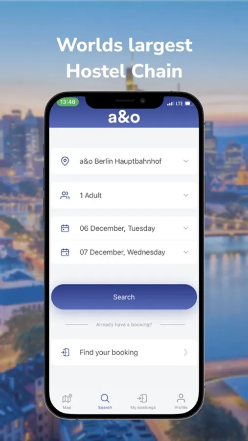Booking: No matter if bed or room - choose your favourite city and book your cheap and central accommodation comfortably on the way. Of course at the a&o best price!