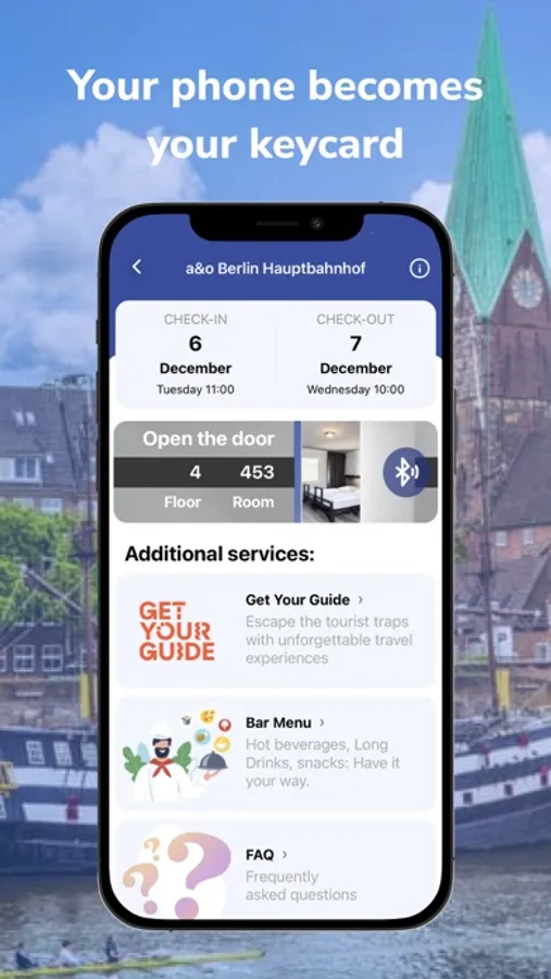 Open the door: Farewell room card! With this app you can now open your room door. Bluetooth on, hold your smartphone to the lock, click - done!