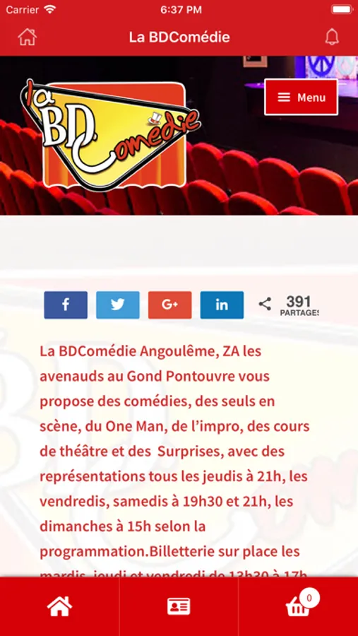 La BDComédie Angoulême, ZA les avenauds au Gond Pontouvre à côté d'Angoulême vous propose des comédies, des seuls en scène, du One Man, de l’impro, des cours de théâtre et des Surprises.