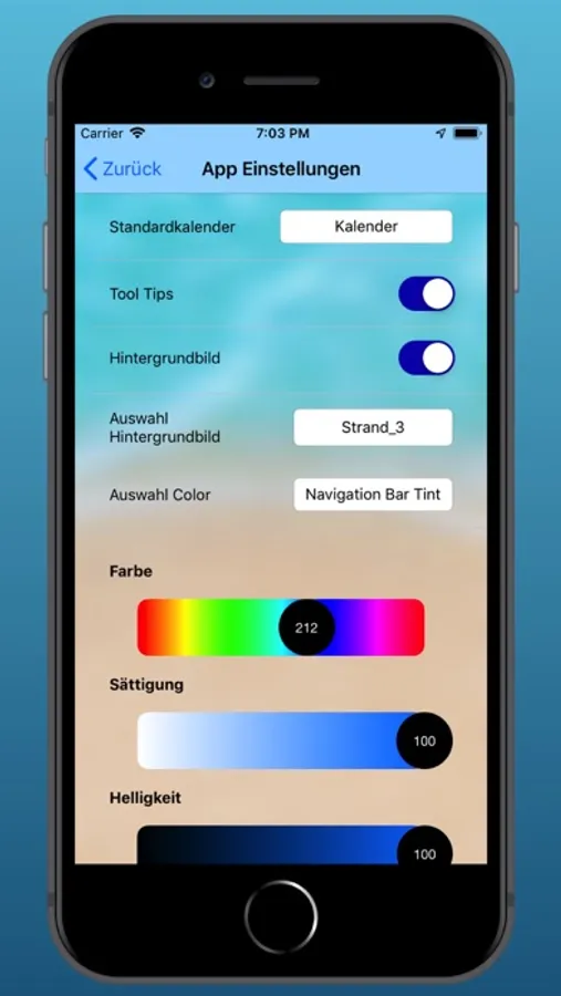 • Hintergrund anpassbar (Farbe oder Hintergrundbild)