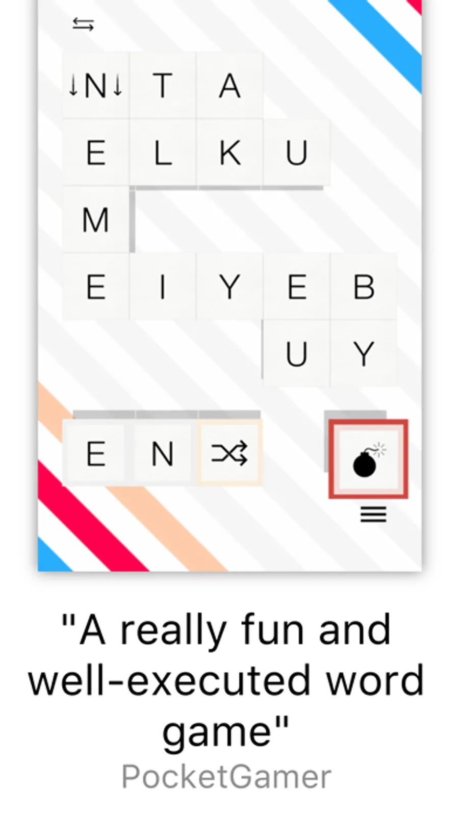 Can you use all of the letters in the 5x5 grid to make words disappear and clear the board? Word Forward isn’t about spelling the longest words or the most clever - it’s about carefully using every tile to declare victory in 500 puzzles. It requires cunning and strategy -- Word Forward is a brain teaser that will really make you think!