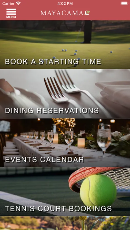 The Mayacama app provides Members with the ability to view & register for Club Events, Golf Tournaments & Championships, book Tee Times, make Dining Reservations, refer to Club Customs and Membership Information, and view their Member Account & Statement by way of mobile app.
