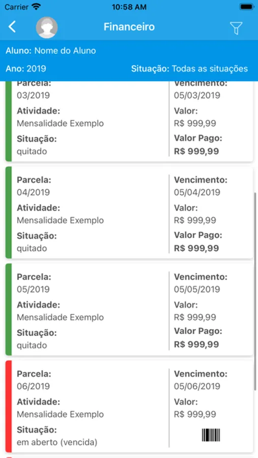 · Controle de acesso (push de notificação quando seu filho entra e sai da Escola)