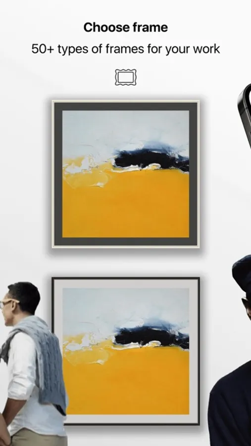 Forget about time-consuming tools like Photoshop. Artmywall is the easiest-to-use tool for visual artists and art collectors for superimposing artwork on wall in realistic way with precise size, adding frame from our artfully made frames collection, creating gallery wall with multiple paintings, and saving final image in high resolution.