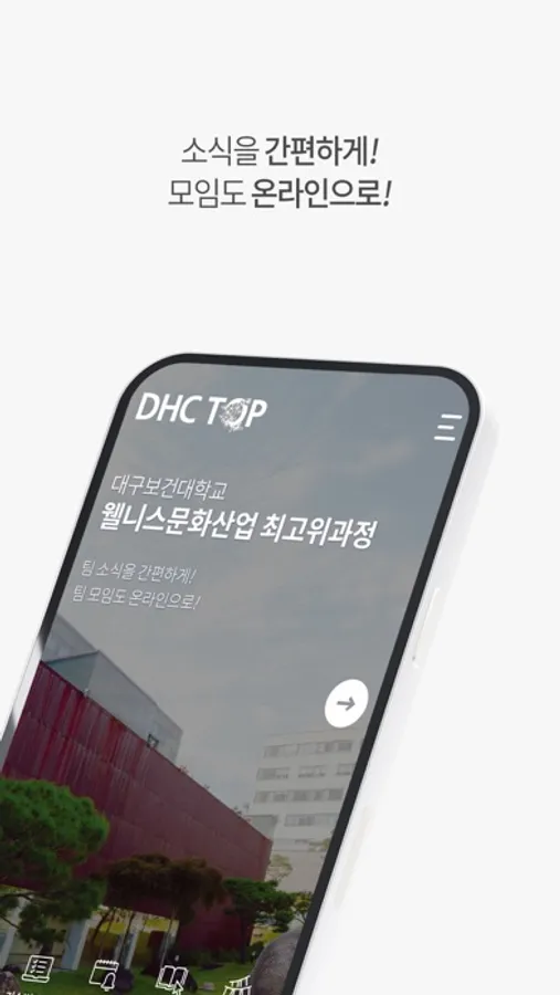 대구보건대학교 DHC TOP 과정 총동창회 소식과 정보를 열람할 수 있는 모바일 수첩 어플리케이션입니다.