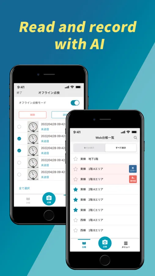 ・All you need is take pictures of meters with your smartphone! AI recognizes the image, automatically reads the value on the meter, and gives you the numeral data.