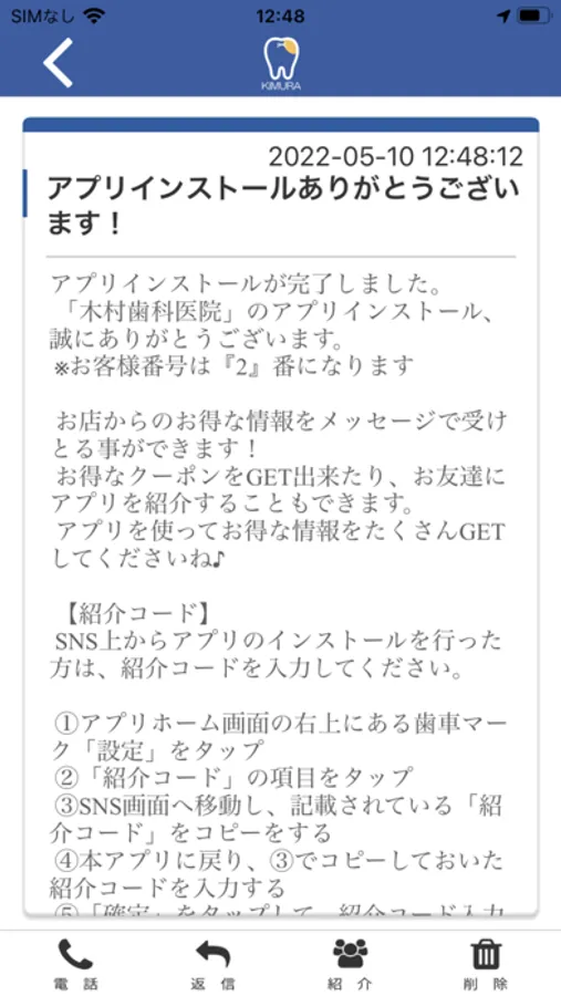 木村歯科医院のアプリをSNSを通じてお友達に紹介する事ができます。