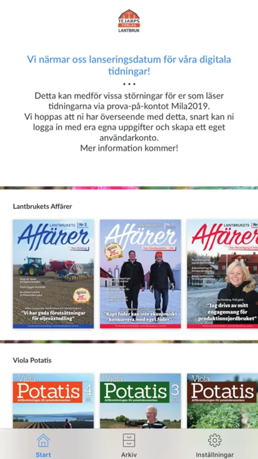 Lantbruk ger dig som prenumerant av Lantbrukets Affärer och Viola Potatis tillgång till en läsupplevelse av tidningarna i din dator, mobil och läsplatta. Du kan läsa artiklarna i ett lättläst format anpassat för din mobil eller platta, eller få dem upplästa med talsyntes.